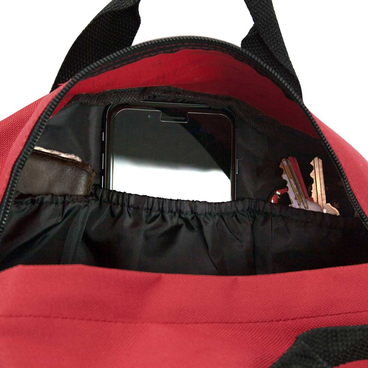 - Zippered main compartment