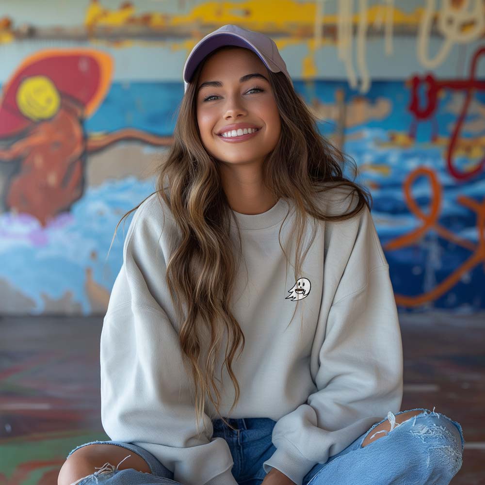 Elevate your fleece game with our Spook-a-Latte Sweatshirt featuring a quirky ghost sipping coffee, perfectly blending the worlds of the supernatural and caffeine. This eye-catching sweatshirt not only showcases your love for coffee and all things ghostly but also adds an unconventional and playful twist to your everyday style.