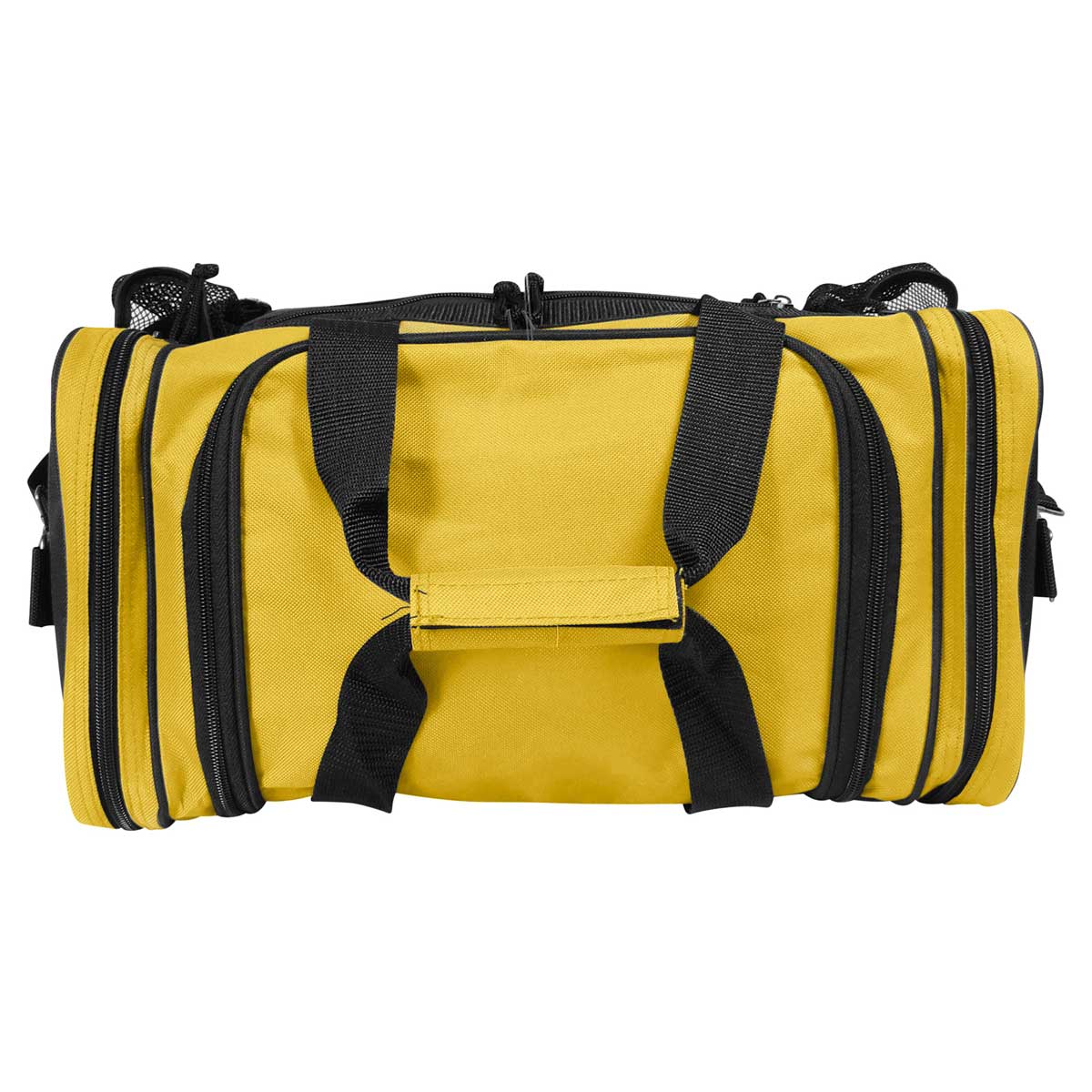 This is the perfect gym bag for you to take on any sports, gym, hiking, any physical activities! There is a top entry Dual-Zippered Pocket for the main compartment (measuring at 15" wide), Two mesh pockets on this duffle bag to carry cell phones, deodorants, sweat bands, socks, anything that will fit! This duffel also features a Front-End Zippered Pocket and Two (2.5") Zippered Top Entry Pockets on each side to carry accessories and belongings without a problem.
