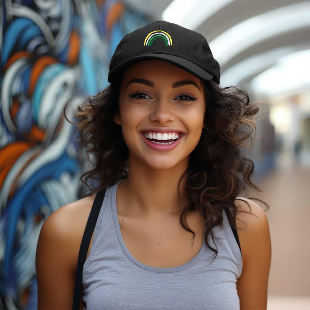 - EMBROIDERED - Green Rainbow on front panel of cap, stitched with premium threading to ensure long-lasting quality