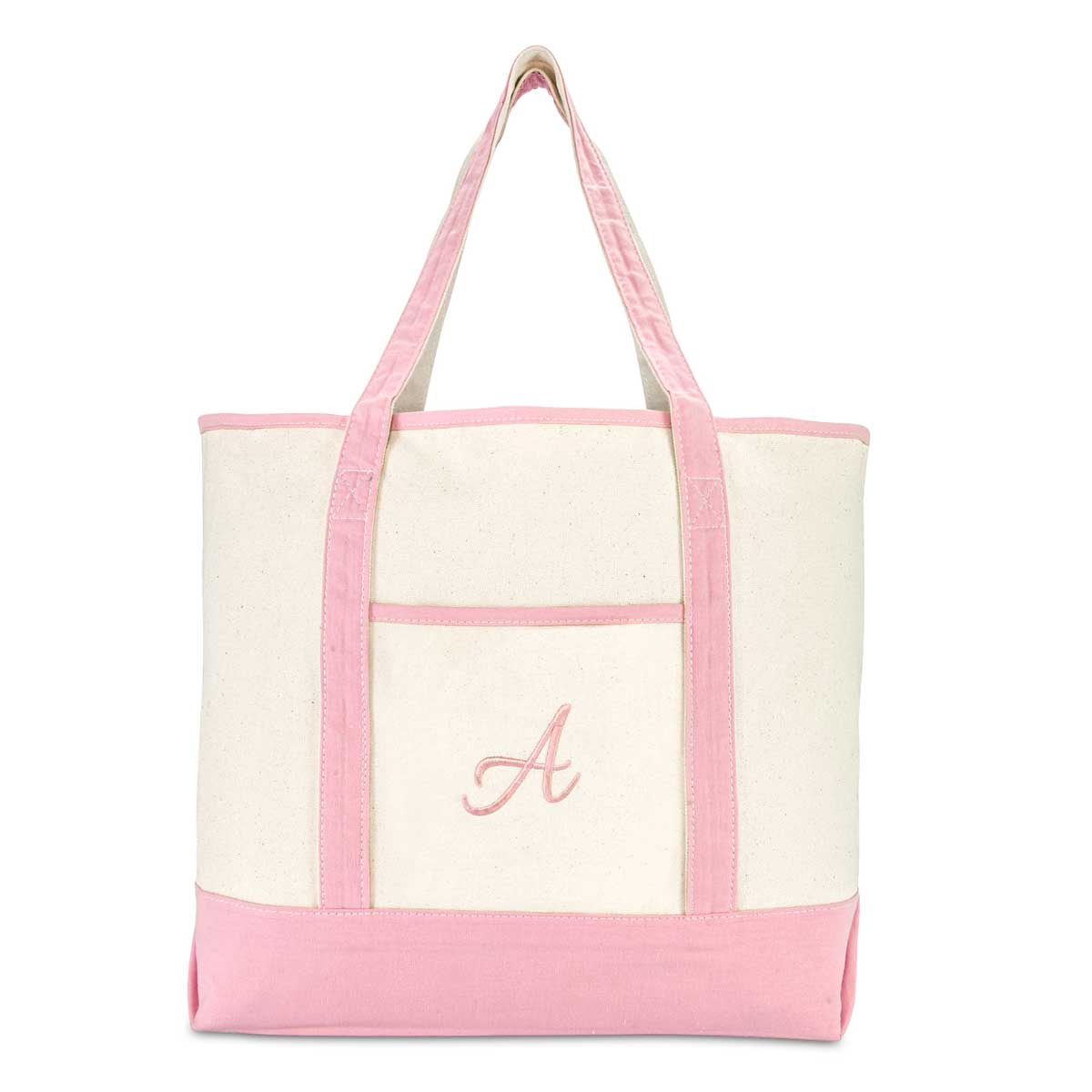 Dalix Women's Cotton Canvas Tote Bag Large Shoulder Bags Pink Monogram A-Z