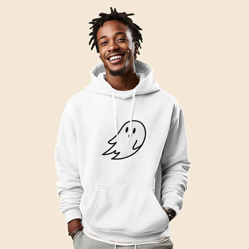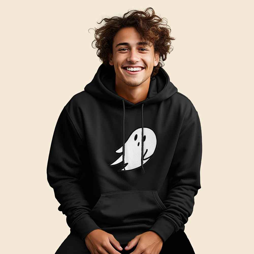 Embrace a larger than life look with our men's hoodie featuring our Giant Ghost embroidery, adding a touch of mystery to your wardrobe!