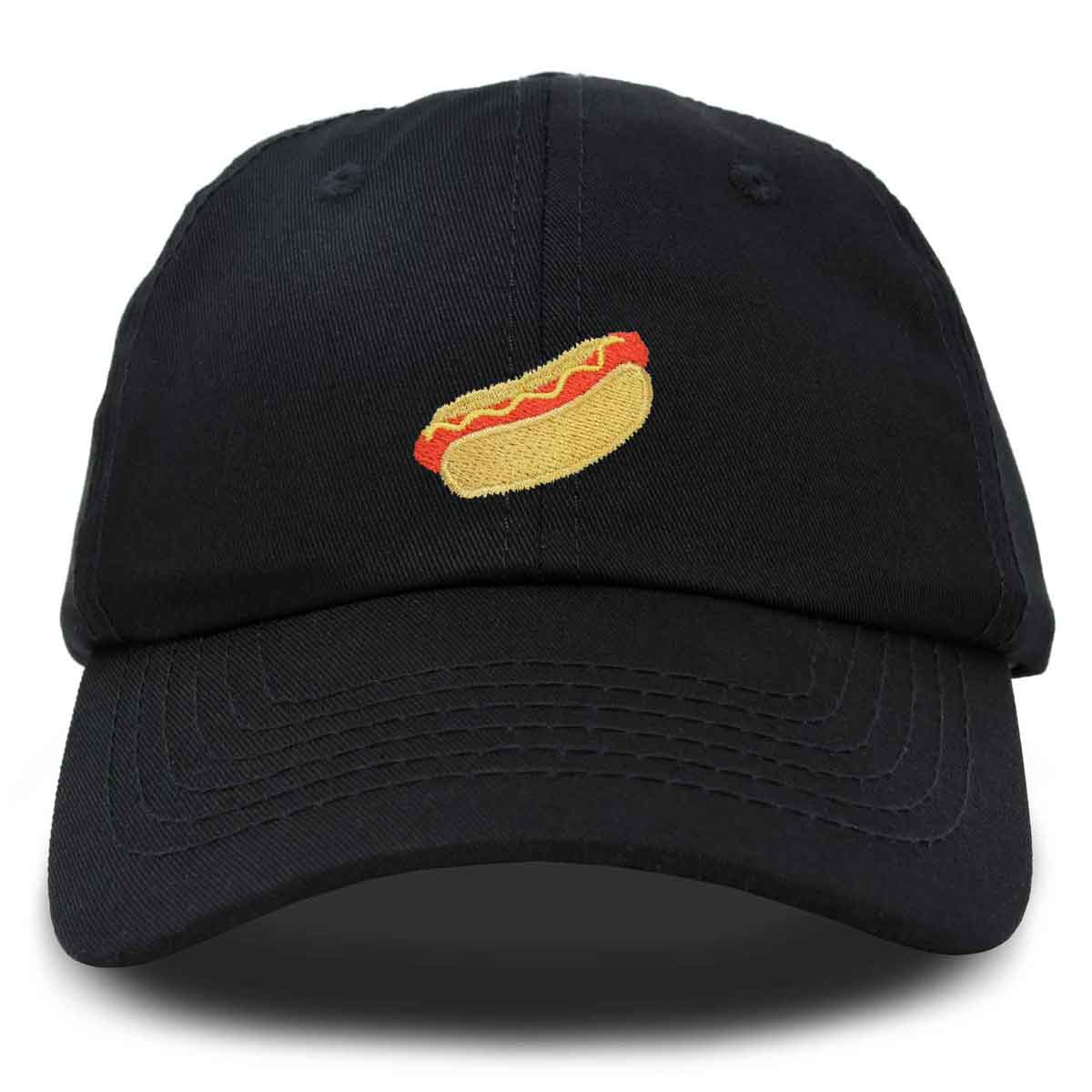 Hot dogs are a backyard barbeque staple. And while some of us have been burned by too many bad cookouts, there are many more who crave a juicy delicious hot dog. So we created this hat for you to represent the love of a hot dog, sausage, bratwurst, frankfurter, in a bun with mustard and ketchup. Express yourself with our 100% cotton cap in a great style that lasts over time. With our soft padded sweat band, this hat fits very well without aggravating the skin. Features Adjustable Size Buckle Strap, Soft inner sweat band lining.