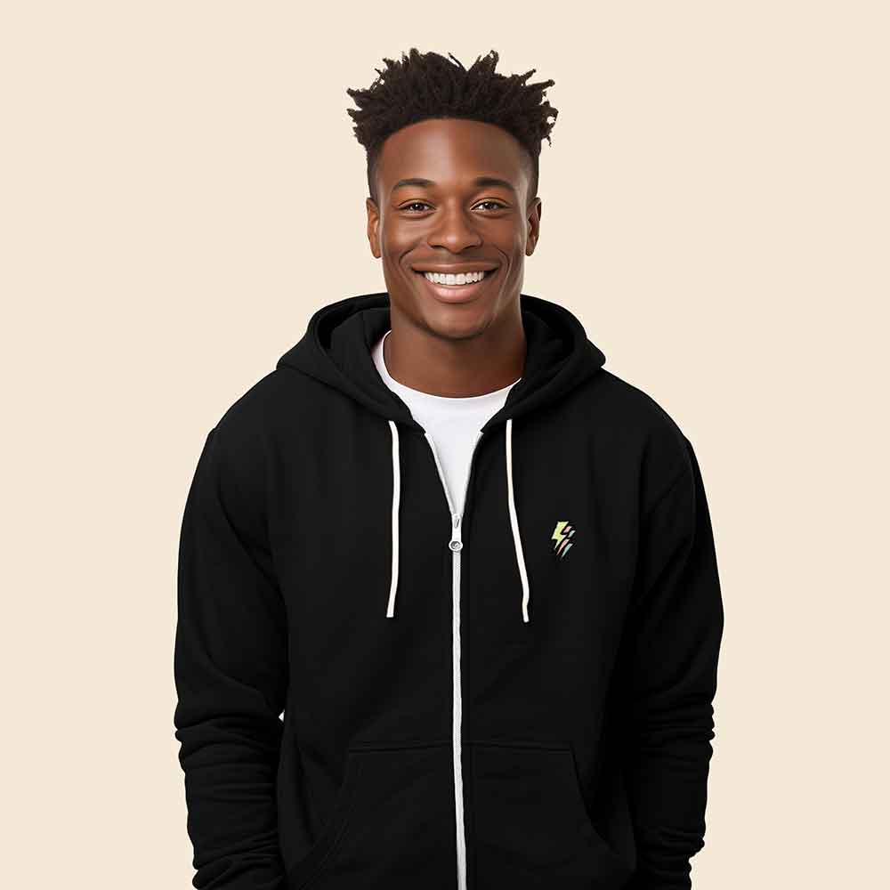 Illuminate your style with our Glow in the Dark Lightning Zip Hoodie. Add an electric statement to your look, ensuring your style shines bright all day and night!