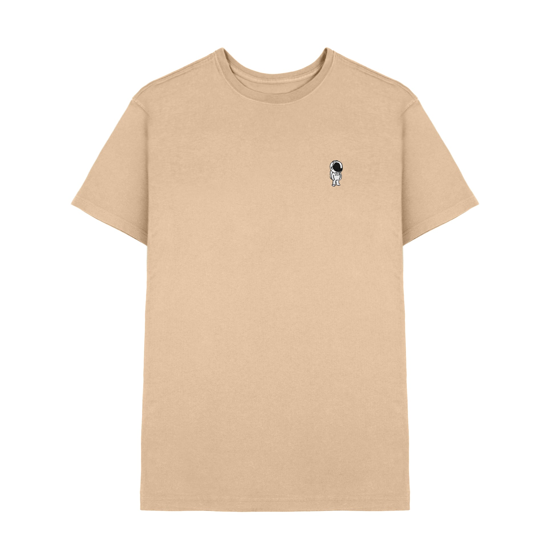 A soft cotton mens tee featuring an embroidered astronaut, perfect for adding a touch of space inspired style to your everyday look.