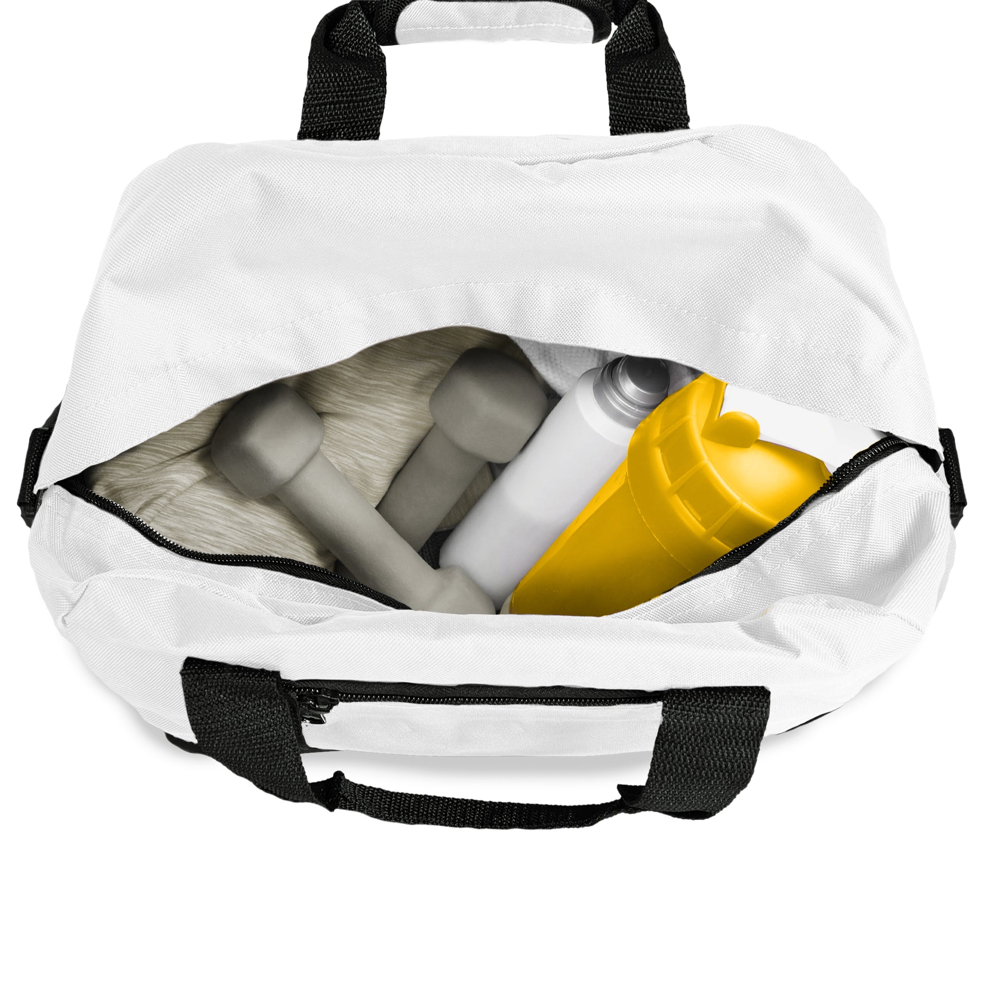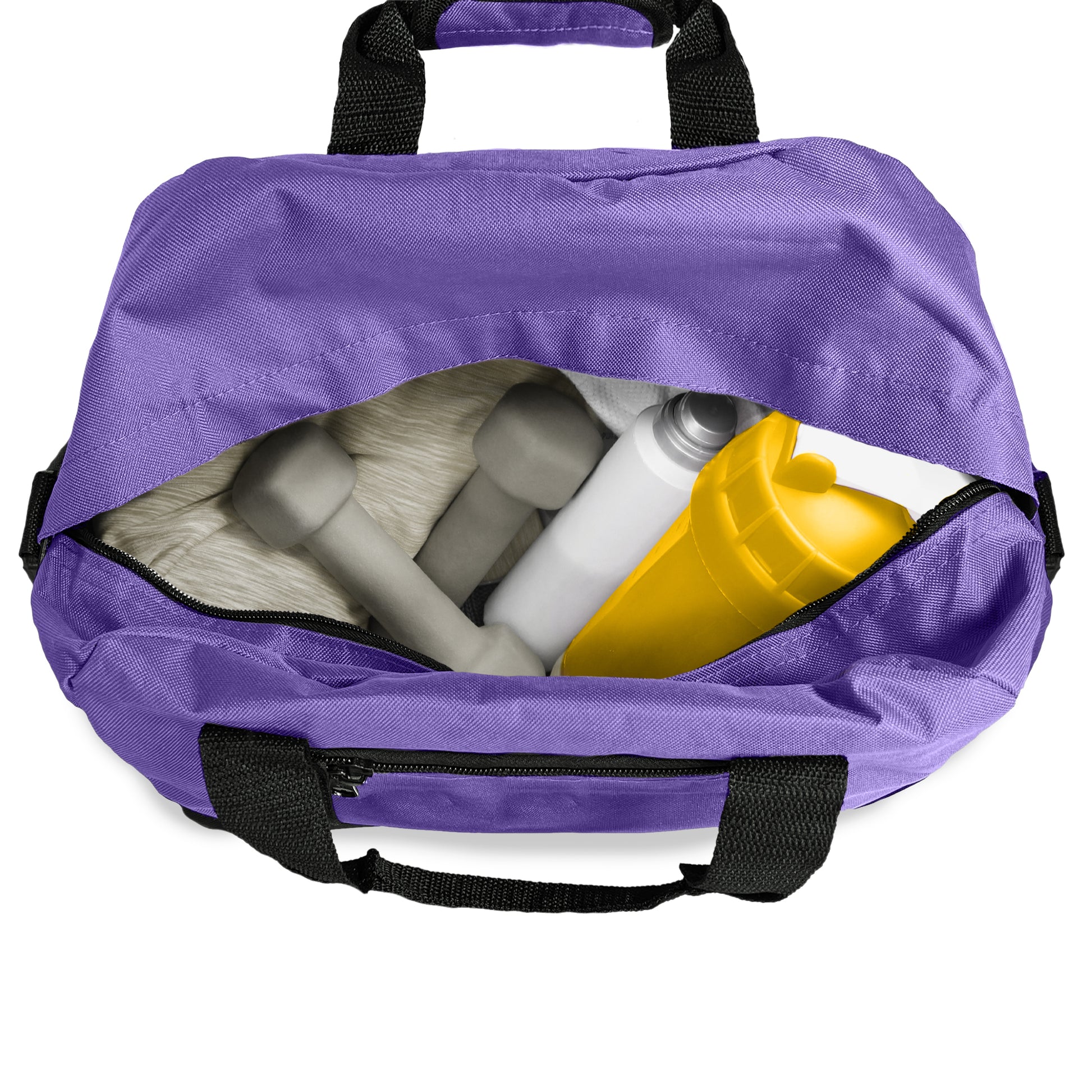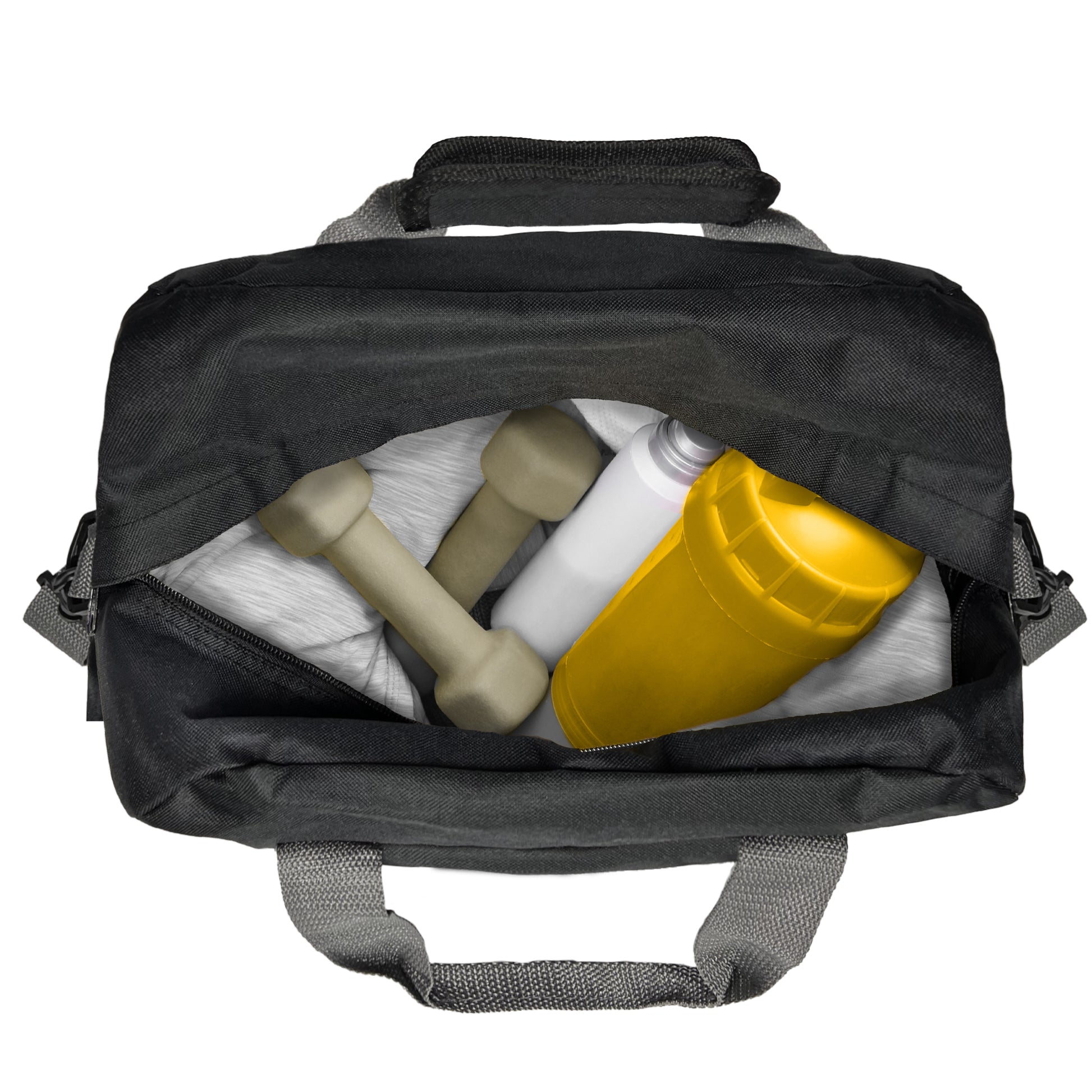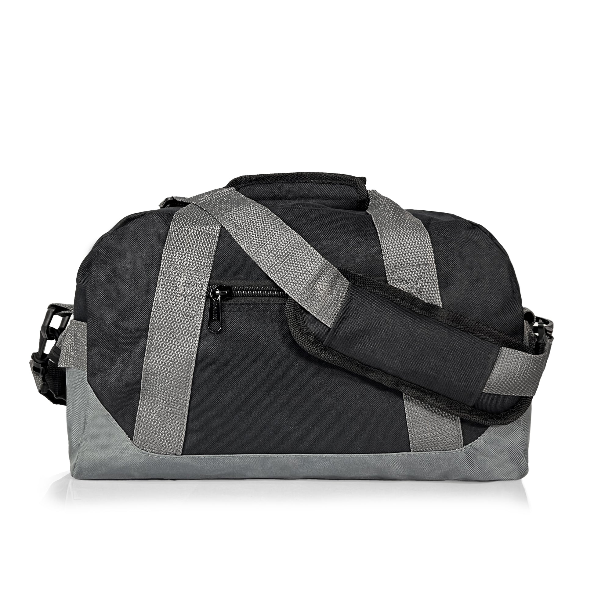 Small Duffel Bag that can be used at the gym, or for light travel. Comes with a detachable padded shoulder strap and two handles for easy grab.