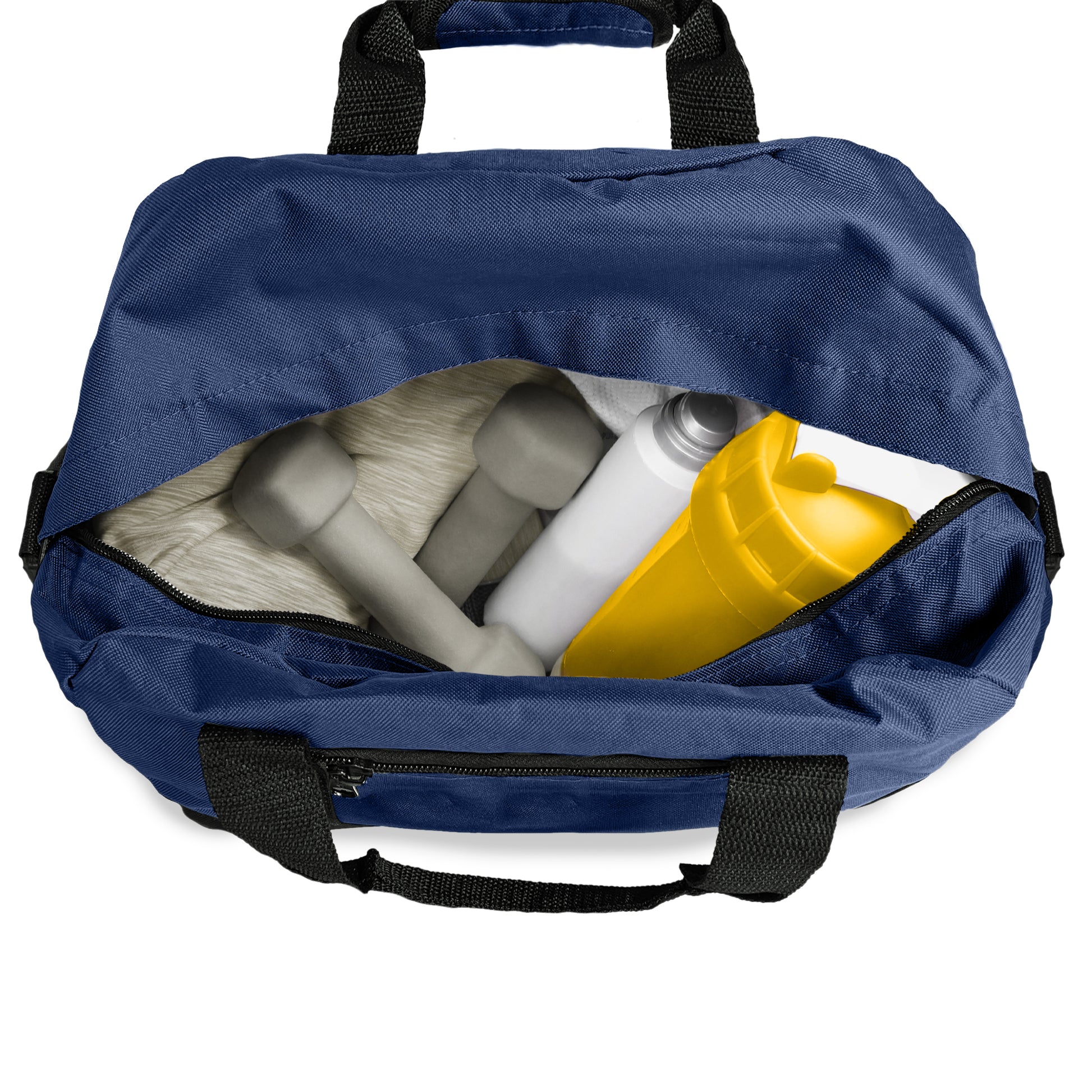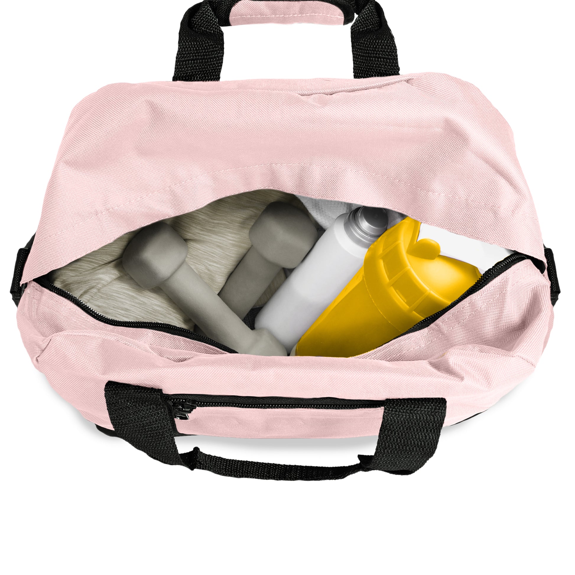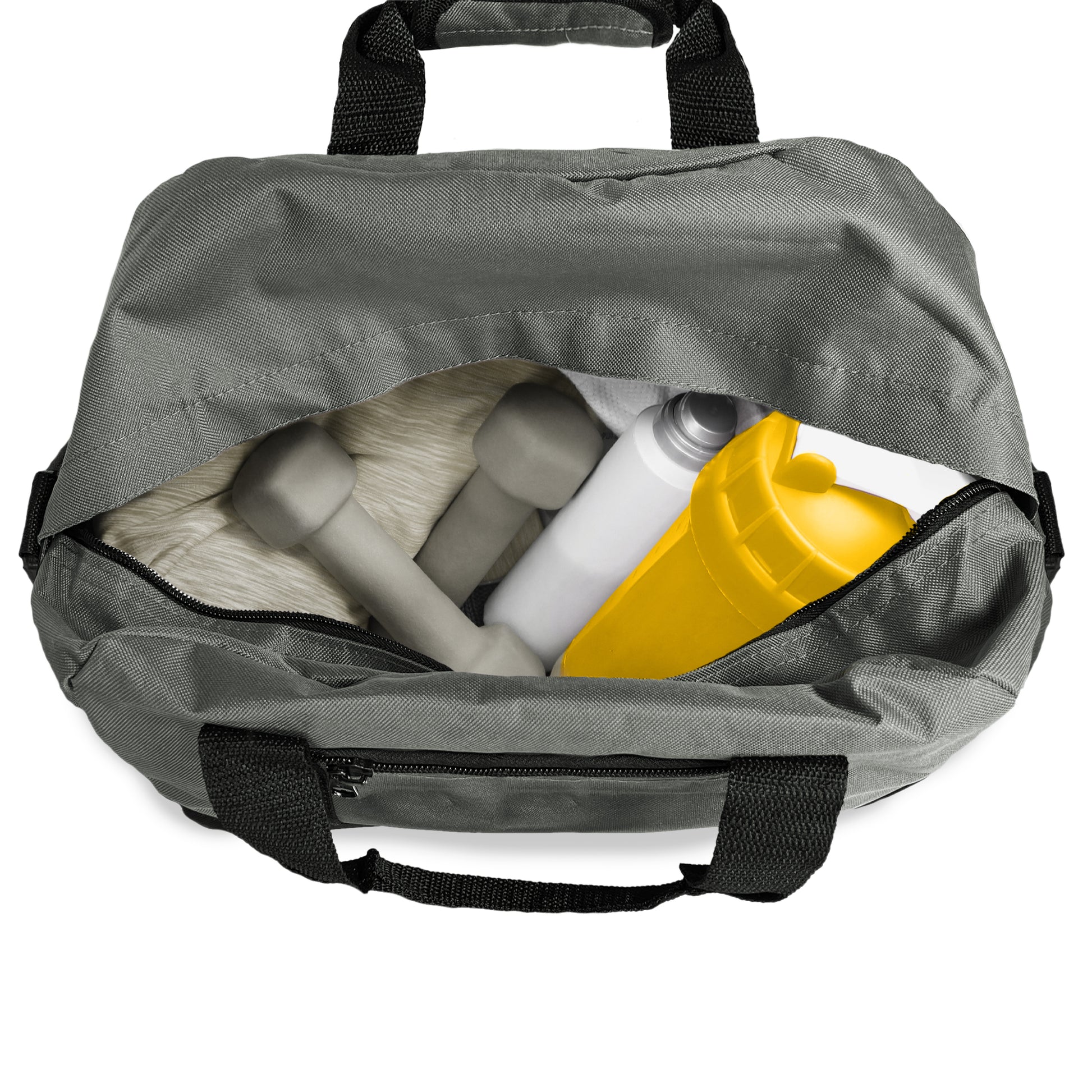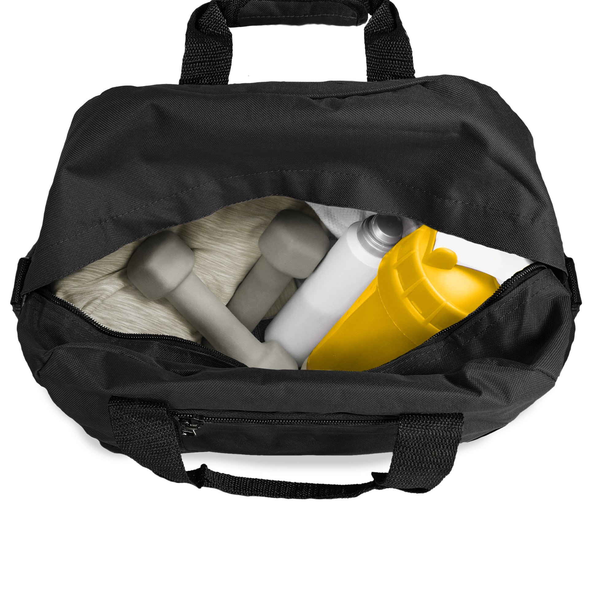 Small Duffel Bag that can be used at the gym, or for light travel. Comes with a detachable padded shoulder strap and two handles for easy grab.