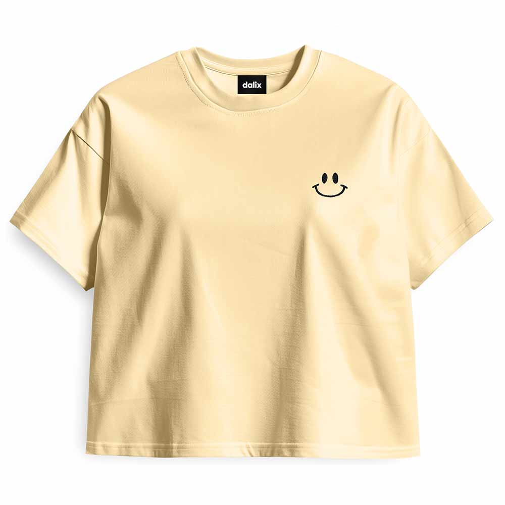 Spread positivity with this women's t-shirt adorned with a vibrant smiley face embroidery, radiating cheerful vibes and adding a dose of happiness to your everyday wardrobe. The whimsical stitching captures the essence of joy, making it a delightful and uplifting choice for any casual occasion.
