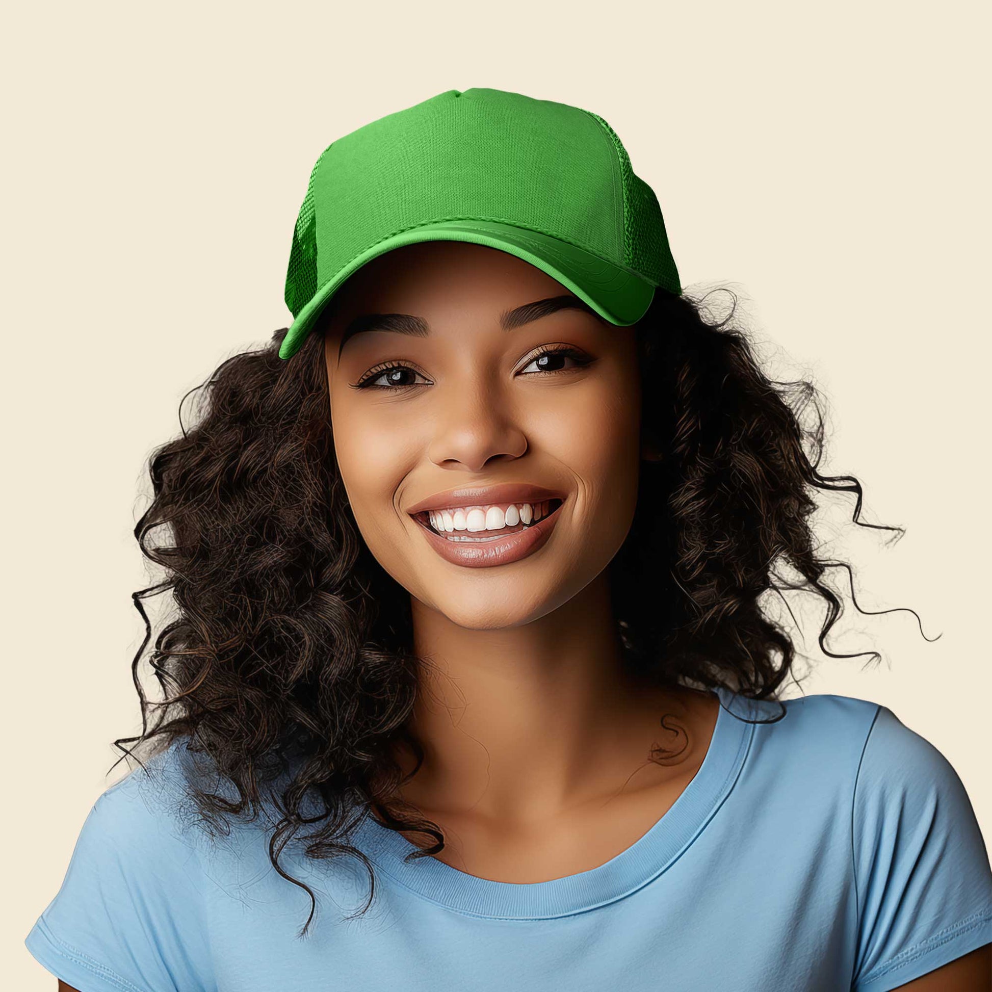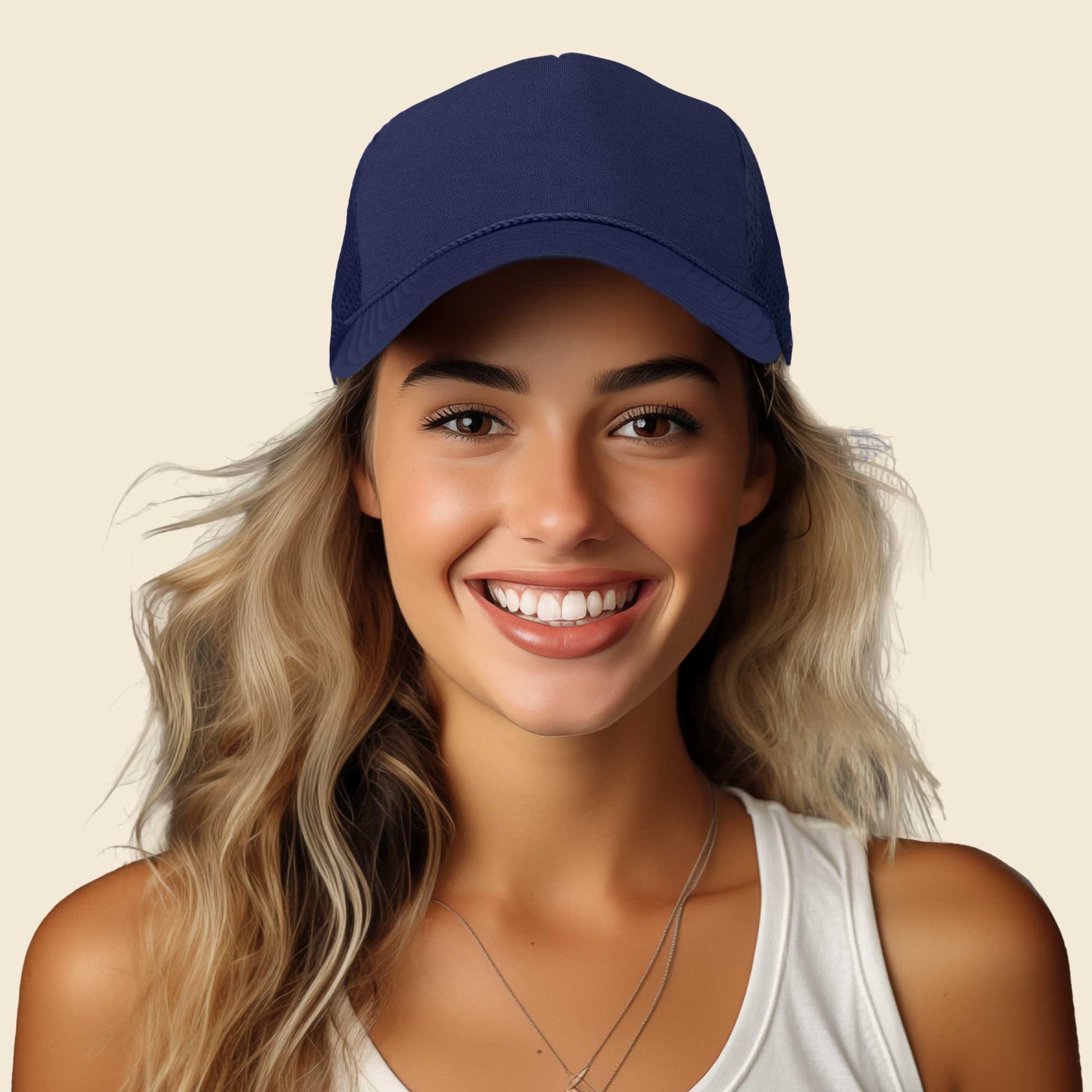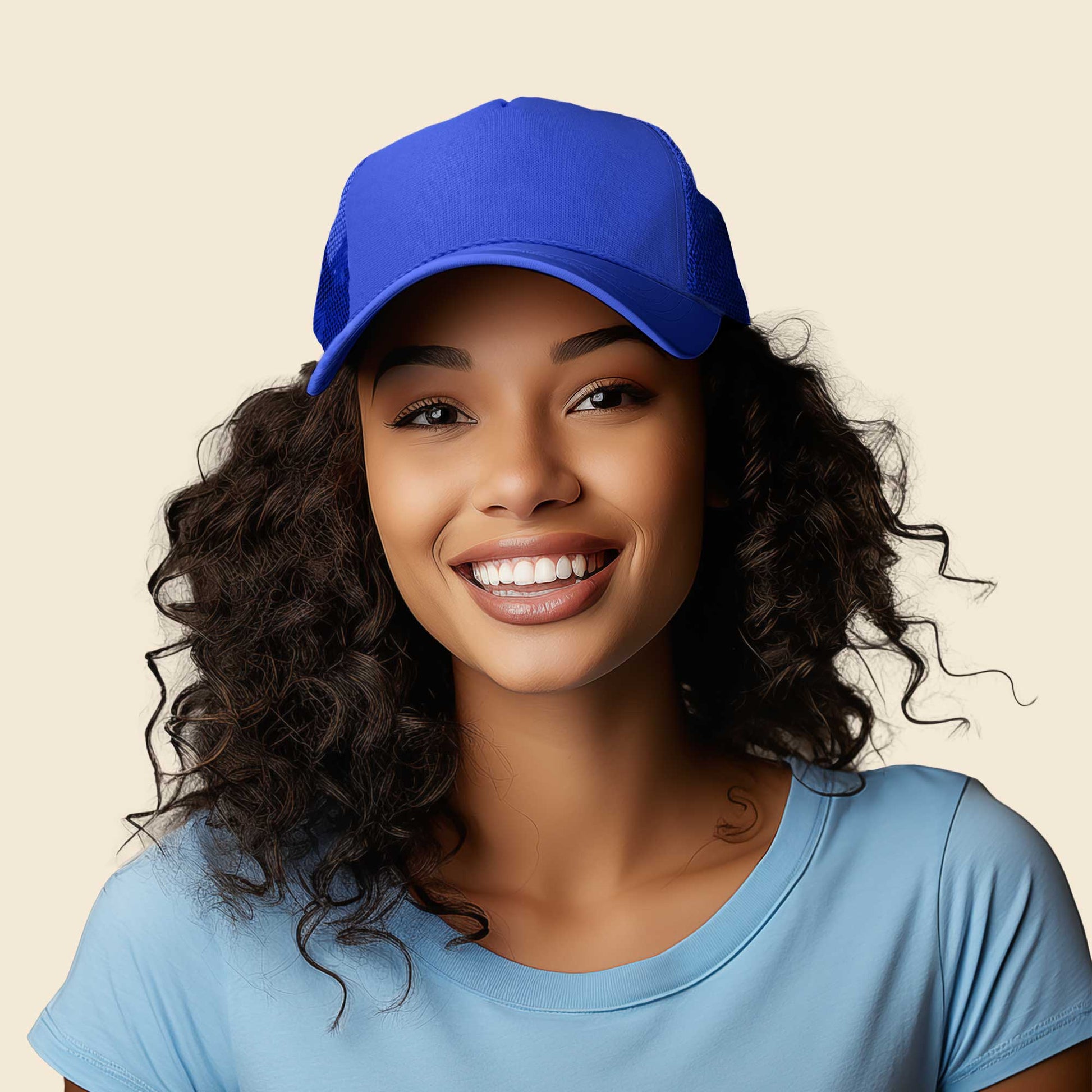 Our Trucker Caps are designed to fit M/L/XL or Size 7 to 7 7/8 fitted. It also features as adjustable plastic snap buckle to fit almost any head.