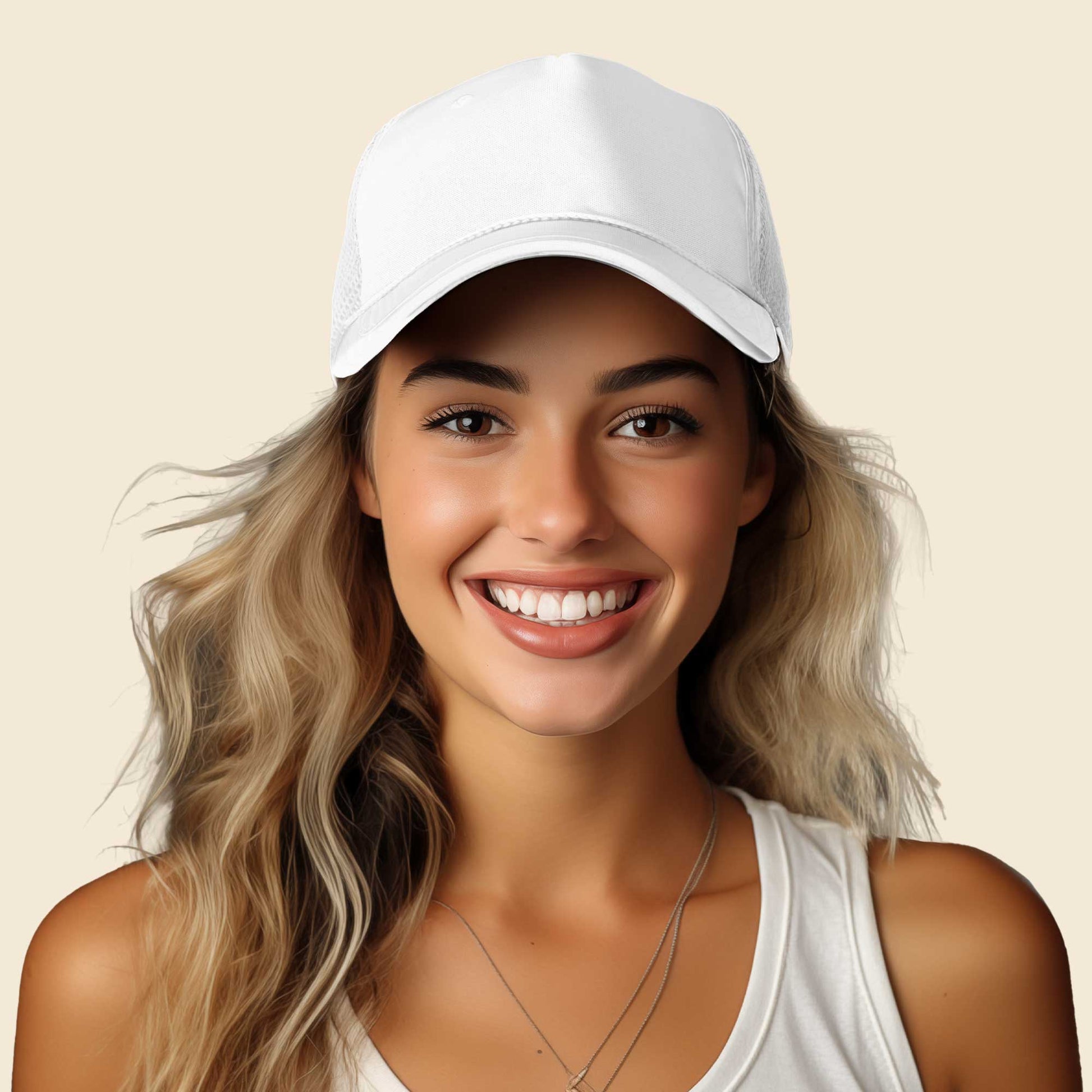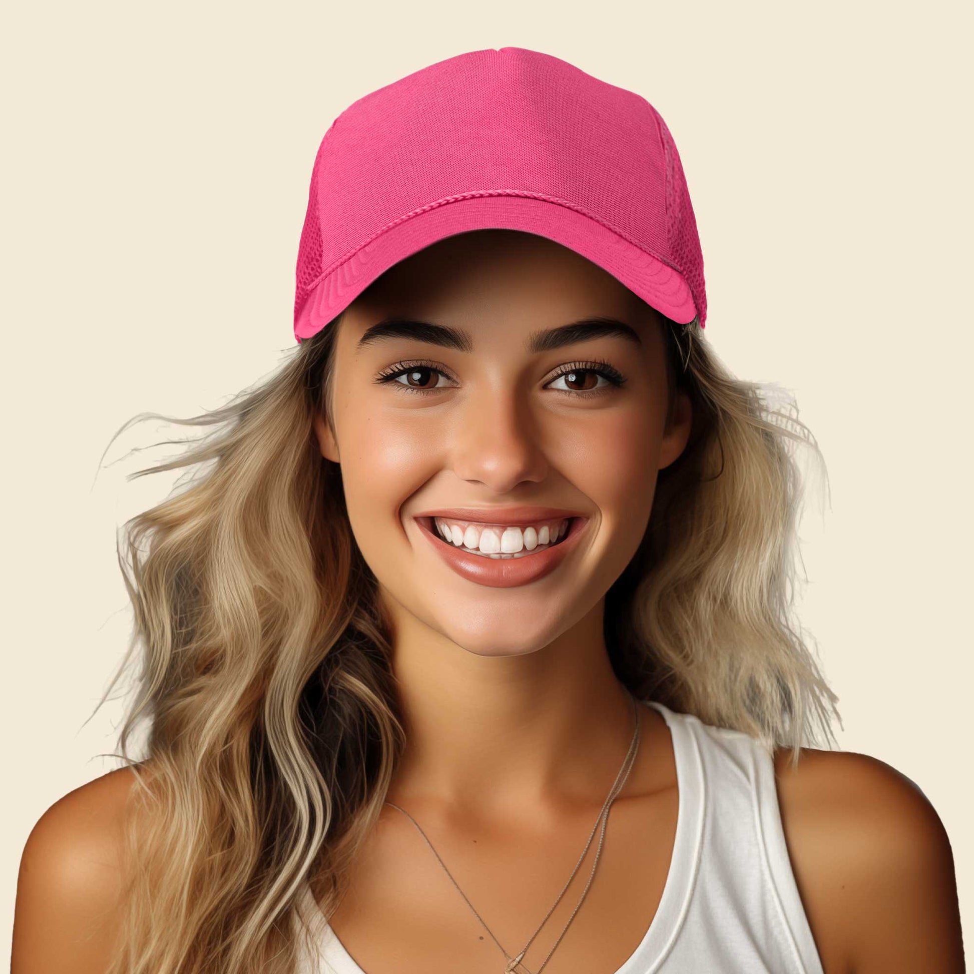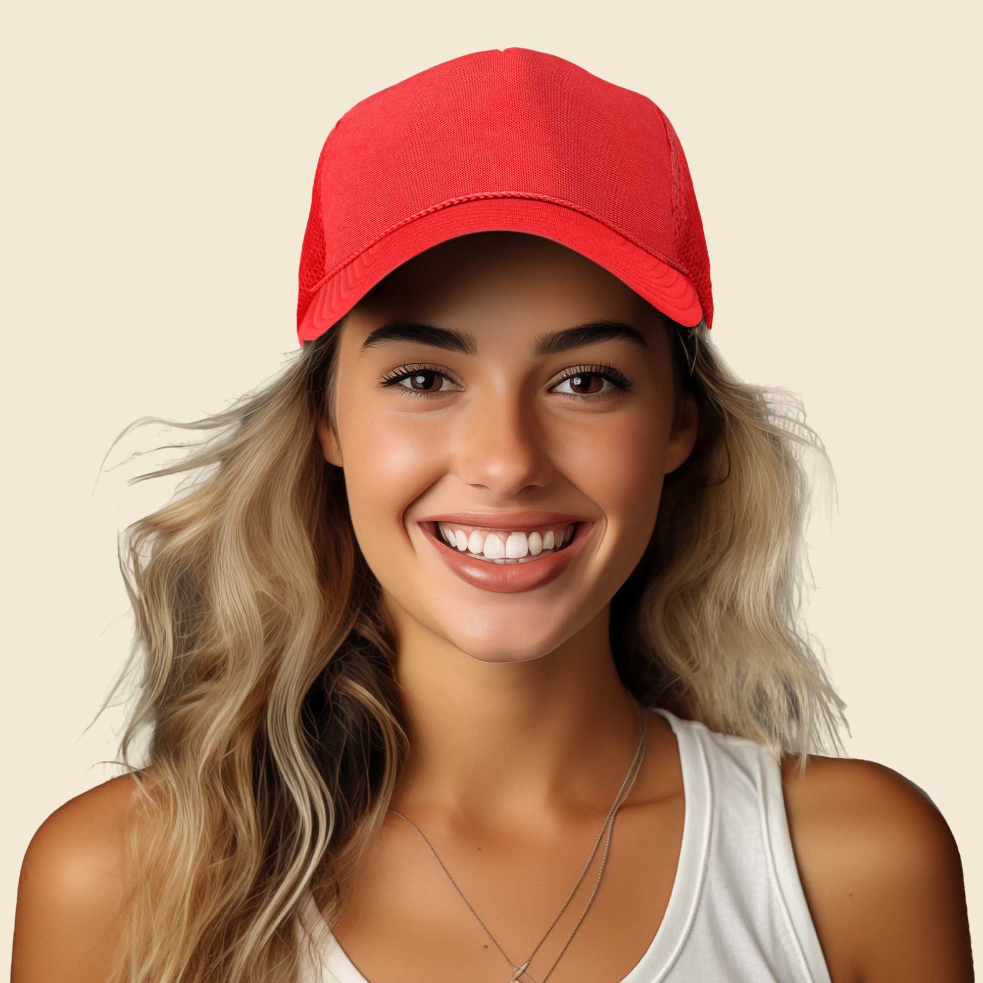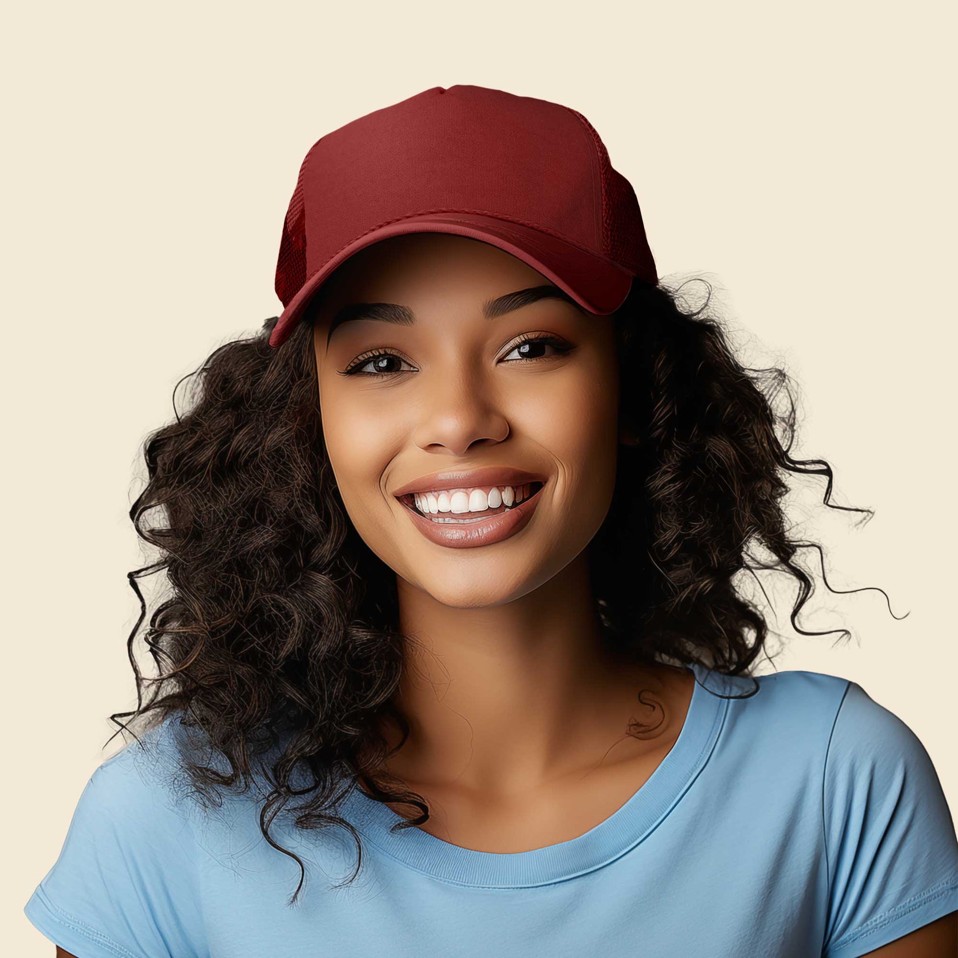 Our Trucker Caps are designed to fit M/L/XL or Size 7 to 7 7/8 fitted. It also features as adjustable plastic snap buckle to fit almost any head.
