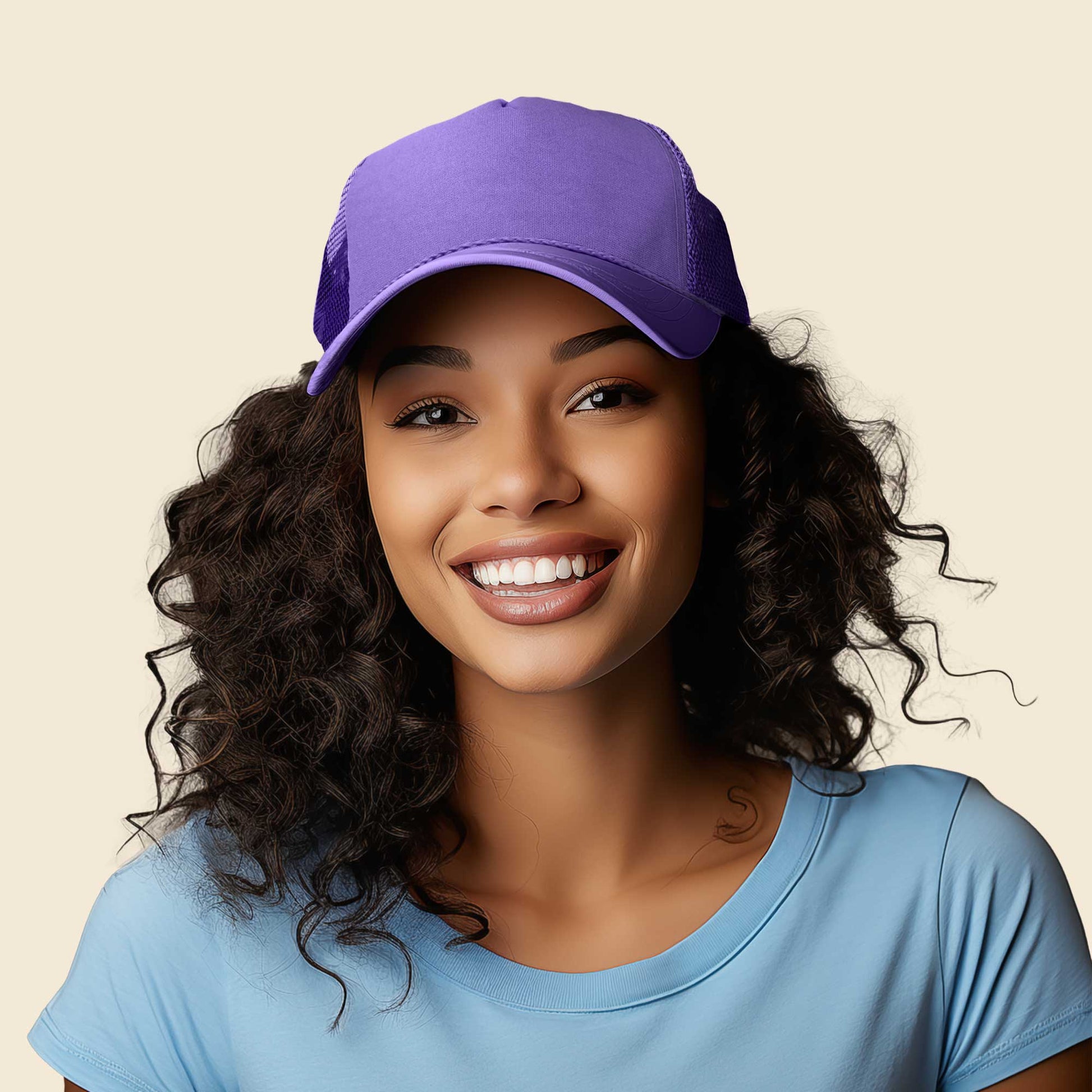 This popular trucker hat is made of Poly Foam, giving it a lightweight and comfortable feel. With a pre-curved bill, it provides optimal shading but you can still curve it to your liking. Cap made for the sports fanatic of any team theme.